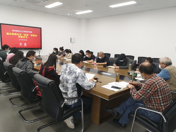 9月26日上午,美术学院在李白河校区尚美楼209会议室召开国庆节期间纠“四风”树新风专题学习会。学院处科级干部、教研室主任参加学习会,会议由院党委副书记、纪委书记肖雷主持。
