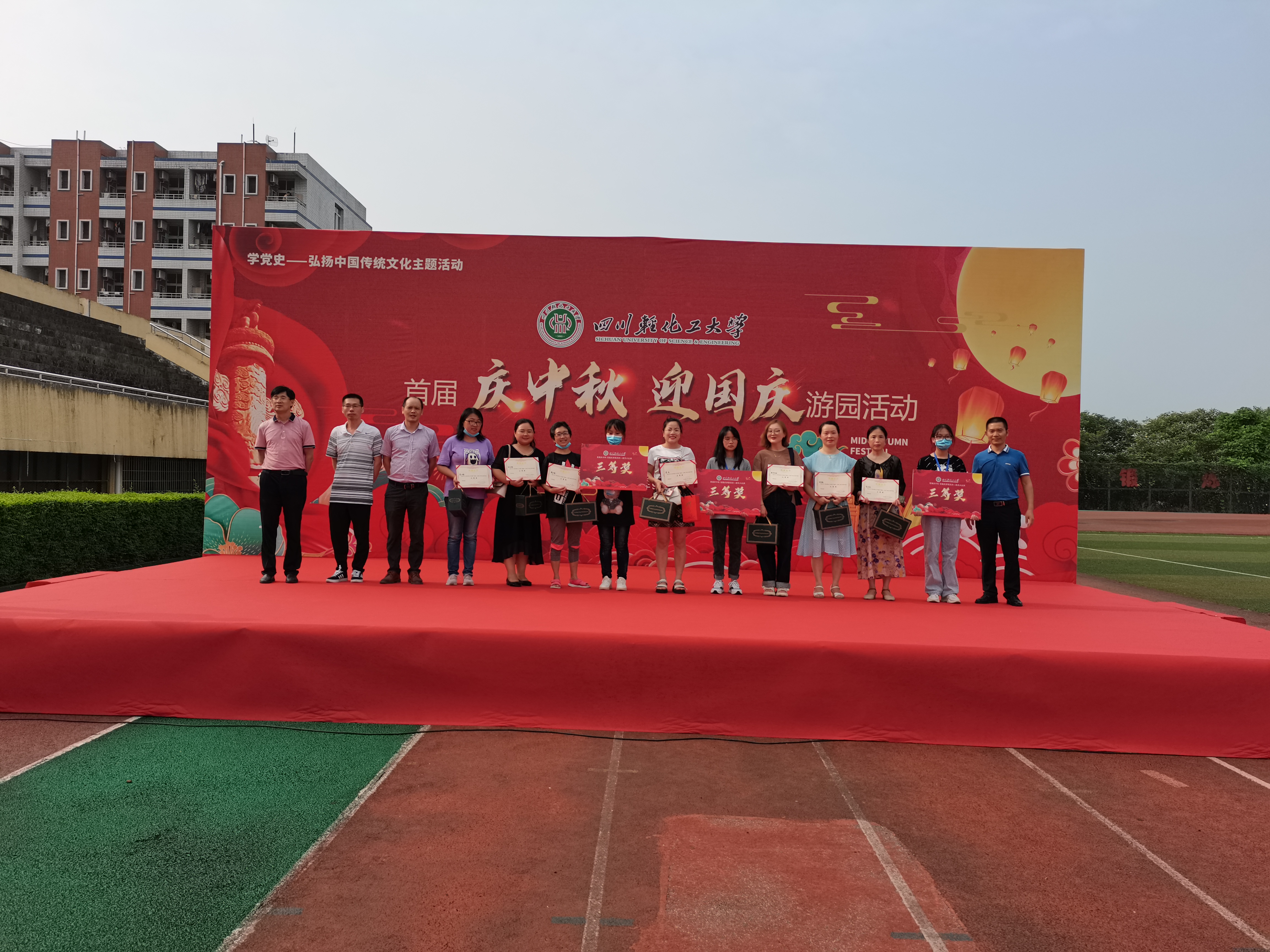 为丰富教职工业余文化生活,弘扬中国传统文化,9月15日下午学校工会在汇东校区足球场举行了四川轻化工大学首届迎国庆、庆中秋游园活动,美术学院14位教职工参加了此次活动,此次活动的项目有厨艺大比拼(月饼DIY)、猜灯谜、党史答题等趣味活动。美术学院教职工们在互动活动中愉悦了身心,增长了党史知识,还提高了厨艺,美术学院一位女职工在厨艺大比拼月饼DIY制作中获得了三等奖,大家都收获满满。