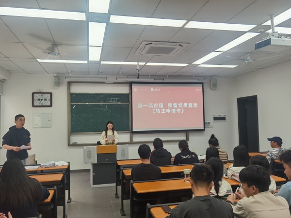 支部书记张超首先介绍了本次大会的主要流程,并宣读了支委会决议。接着,8名发展对象依次宣读入党志愿书,入党介绍人报告入党申请人考察情况,支部与会党员对发展对象是否符合党员条件充分发表意见,经举手表决,全体正式党员一致同意接收齐雪等8名发展对象为中共预备党员。接着,6名中共预备党员宣读转正申请书,并简要介绍了自己在预备考察期内的情况。入党介绍人介绍情况,与会党员发表意见。经表决,支部一致同意王传智等6名中共预备党员如期转正。结果公布后,14名同志先后作表态发言,感谢党组织的信任以及老师、同学的支持,作为一名光荣的中共党员,一定会坚定共产主义理想信念,奋发有为,积极向上,用实际行动践行入党誓言。