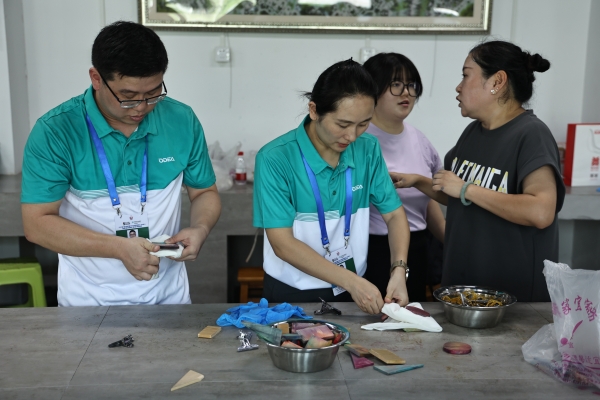 8月15日,在第26届中国大学生网球锦标赛比赛间隙,中国大学生体育协会网球分会五位领导来到美术学院印染工坊体验自贡扎染技艺。