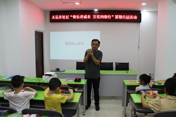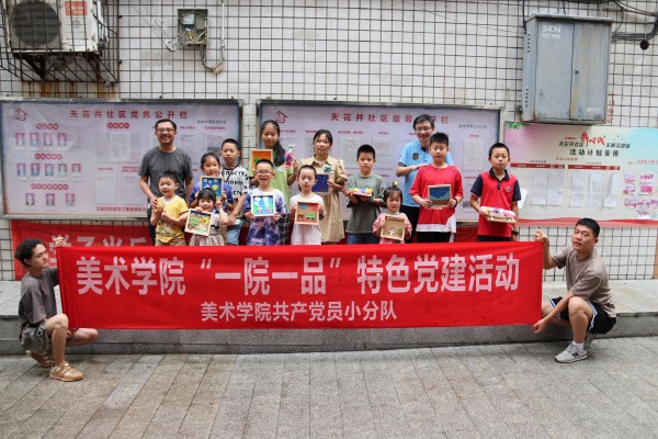 7月21日上午,美术学院组织师生一行5人前往自贡市自流井区同兴路天花井社区送文化,社区15名小学生和学前儿童参加活动。
