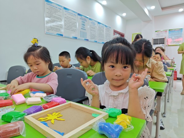 当接力棒交到第二阶段辅导教师梁川手中时,同样的问题摆在眼前。第二阶段的活动内容是手工泥塑,此时在师生双方建立行之有效的行为互动方式特别重要,这需要指导教师运用多年教学实践经验。面对难以理解过多抽象概念的小学生,尤其是学前儿童,动手示范也难以做到有效影响。此时,必须由参加活动的志愿者手把手地逐一辅导。针对不同年龄阶段应该显现的基本能力和不同个人显现出的不同素质,需要师生们不断变化辅导方式,而面对十分调皮的学生要适时规范行为,面对积极动手动脑的学生要不断引导,不吝表扬。
