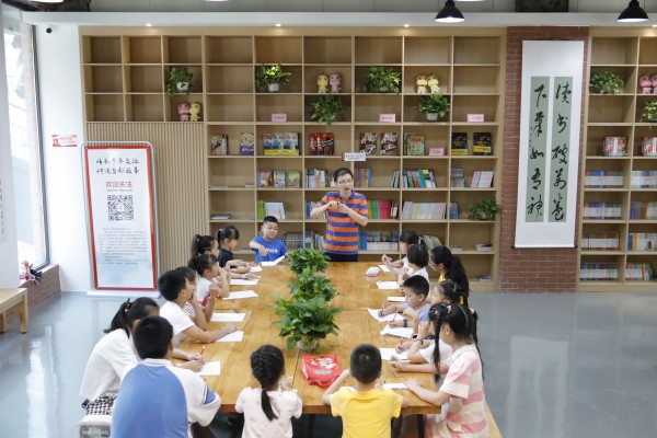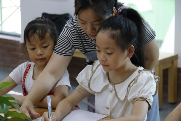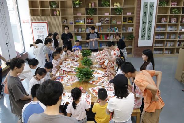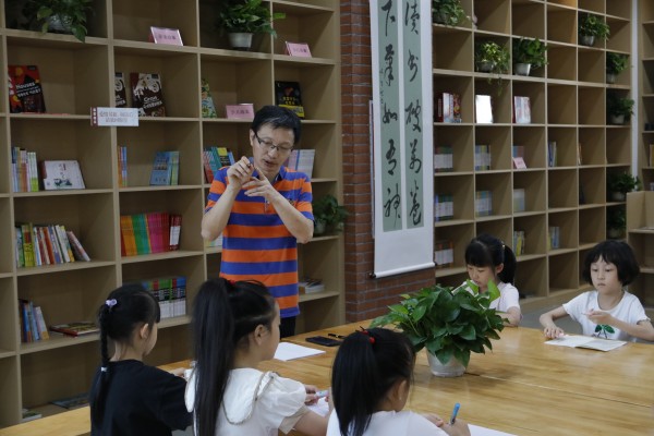 7月16日上午,美术学院志愿者和人文学院教授王益师生一行7人来到自流井区五星街城市书房开展送文化进社区活动。五星街下辖社区17名学生报名参加。活动前一阶段仍然为人文学院王益教授讲解硬笔字书写要领,后一阶段照旧是组装鱼龙灯。当天参加活动的小学生们虽然不多,但家长们的热情却不低。现场开放式的空间格局给予家长们融入活动的机遇。在王益教授讲解钢笔字书写要领之后,家长们也参与到纠正错误书写姿势的教学环节中,龙鱼灯的组装家长们也没有落下。不知不觉中时间来到11:00,参与活动的师生们都度过了一段快乐而富有教育意义的时光。