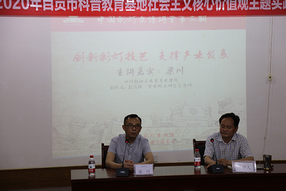 在新冠肺炎疫情阴霾逐渐消散,社会生活逐渐回归正常之际,逐渐推进美术学院“一院一品”特色党建项目,充分将美术学院专业学科优势与服务地方文化发展有机融合,培养传承“自贡灯会”等地方性优秀传统文化遗产的应用型人才。2020年5月20日    下午,美术学院副院长、民俗灯文化普及基地副主任梁川应邀前往中国彩灯博物馆举办彩灯文化讲座,讲座的题目为“创新彩灯技艺 支撑产业发展”。讲座由中国彩灯博物馆和民俗灯文化普及基地联合主办,是自贡市2020年“国际博物馆日”系列活动之一,是中国彩灯博物馆推出的“中国彩灯文博讲堂”第三期系列讲座之一。讲座由中国彩灯博物馆副馆长张利主持。博物馆讲解员、研究人员、部分工作人员及自贡彩灯公园管理处部分工作人员近30人参加讲座。