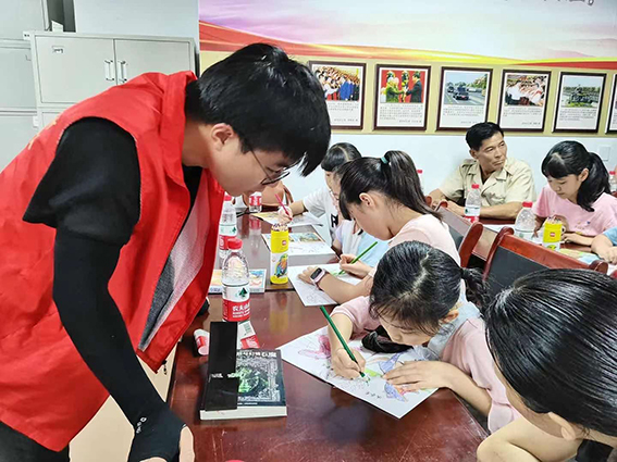 7月12日上午,美术学院副院长梁川带领我院学生志愿者前往自贡市自流井区钟云山社区开展“了解经典作品、感知美术技能”一院一品暑期送文化进社区系列活动。来自钟云山社区各街道和居委会的30余名小朋友参加活动。
