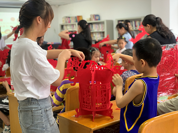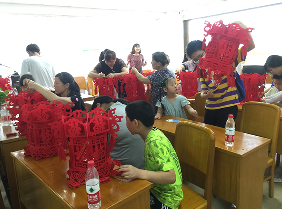 活动的第二项内容为彩灯手工制作。在梁川的指导下,我院6名志愿者分工负责,指导参加活动的每一位小朋友以简易手段制作彩灯。制作彩灯立即调动起大家的兴趣,现场顿时热闹起来。在示范志愿者的带领下,从7岁至14岁,每一位小朋友无不争先恐后,按照示范要求集中精力开始制作彩灯。社区基层干部和工作人员还有部分小朋友的家长也深受感染,纷纷加入到彩灯制作的活动过程之中。