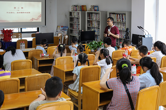 此次活动分两项内容,第一项为梁川主讲《长征美术作品欣赏》。结合美术作品的图片资料,梁川向参加活动的小朋友们讲解了中国共产党领导中国工农红军胜利完成二万五千里长征的基本历史。在讲座过程中,梁川通过问答形式积极调动气氛,有地放失地调控现场纪律,使参加活动的小朋友们能够集中注意力听讲。