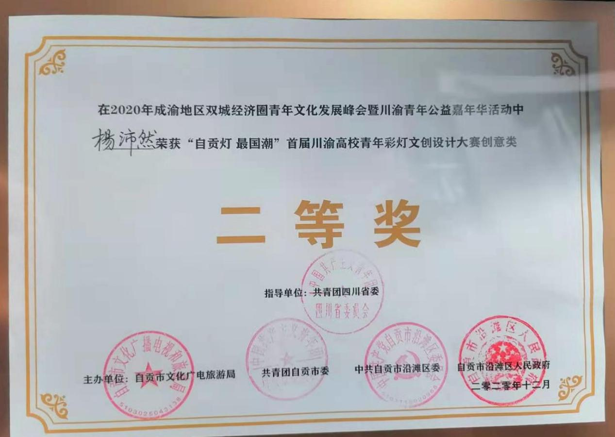 美术学2018级彩灯艺术方向设计团队设计作品《灯会系列趣味盲盒(灯会者联盟)》荣获成渝地区双城经济圈文化发展峰会暨川渝青年公益嘉年华 “自贡灯 最国朝”首届川渝高校青年彩灯文创设计大赛创意类二等奖。