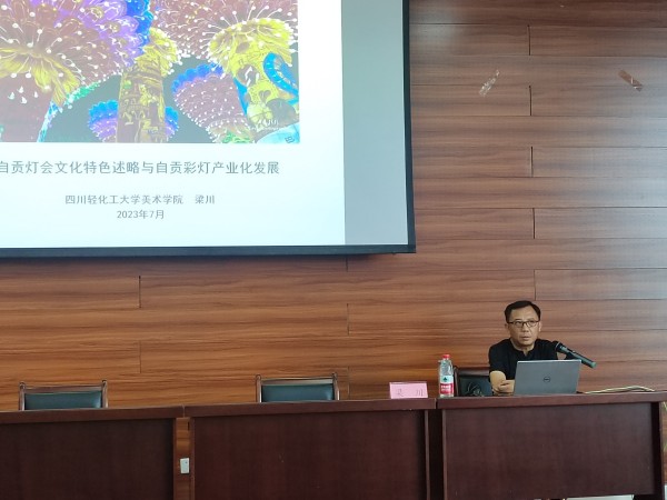 7月13日下午,应承办单位四川轻化工大学马克思主义学院邀请,美术学院副院长梁川教授在汇南校区第四实验楼302学术报告厅为2023年自贡市非公企业党建业务培训班学员举办彩灯文化讲座,讲座题目为《自贡灯会文化特色述略与自贡彩灯产业化发展》,参训企业代表60人参加讲座。