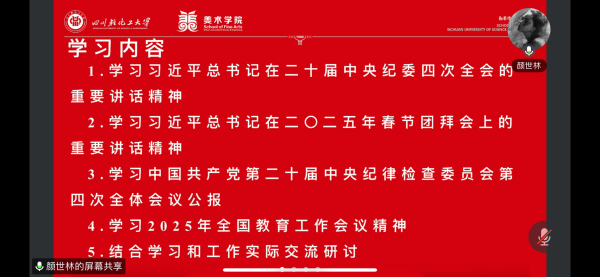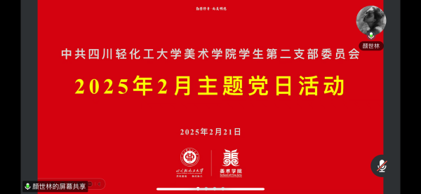2月21日下午,美术学院学生第二党支部通过腾讯会议开展2025年2月主题党日活动,支部22名党员参加会议,会议由支部书记王丽主持。