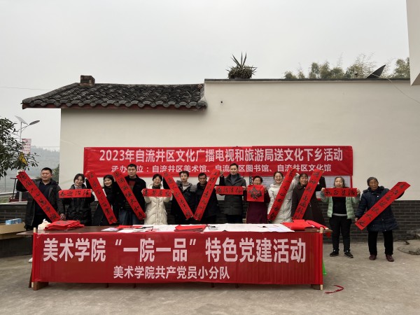 革命先烈卢德铭故居位于仲权镇竹元村。目前仲权镇正在积极申报创建省级百强中心镇,竹元村正在开展全国红色美丽村庄试点建设。此次活动是2022年12月美术学院与自流井区文化广播电视和旅游局签署战略合作协议之后,根据协议内容支持仲权镇及竹元村全面推进乡镇红色文化建设的首次活动。自流井区文化广播电视和旅游局党总支书记陈顺至现场指导,仲权镇党委副书记董登科、竹元村党支部书记吴平等村镇领导精心布置场地,体现对此工作的重视。春节前,美术学院还将继续开展送春联和“福”字等公共文化服务活动,弘扬中华优秀传统文化。