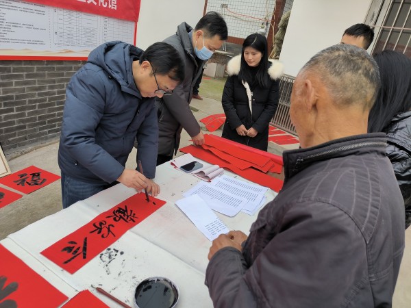 春节是汉族最重要的传统节日,春联是雅俗共赏的艺术形式。过去五年来,美术学院一直坚持在春节前夕开展送文化下乡活动,通过书写、赠送春联和“福”字扩大影响,为基层群众的年节生活带去高雅文化,传承中华优秀传统文化。