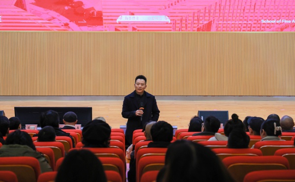 12月26日上午,庹先国校长来到美术学院尚艺馆艺术报告厅开展“六个一”活动,美术学院师生150余人参加了活动。