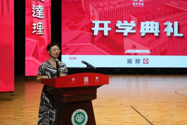 党委书记侯懿送给新同学两个关键词:品牌和主动。她指出,从今天开始,“川轻化”这个名字将伴随我们一生,川轻化的品牌价值是由教师和它的校友共同塑造的,你优秀,它就更优秀;你的大学优秀,你的求学履历就会产生品牌溢价。希望新同学树立远大志向,用你的优秀为川轻化、川轻化美术学院助力,为自己的人生添彩。她希望新同学从今天开始,抛掉中学在老师紧盯下学习的习惯,养成自律的学习习惯,开启艰苦的大学学习之旅:主动思考未来的职业,主动做好学业规划;主动坚持锻炼,在离开大学的时候,至少有一项坚持了的4年(3年)的运动项目;主动学习,建构自己的“图书馆”,列出自己的必读书单、技能认证清单和辅修专业(或课程);主动参与大学各种活动,主动加入和参与学生会、志愿者队伍、学生社团和自己宿舍的服务与管理,从中学习通过书本学不到的最重要的能力;主动与老师联系,没有一个老师会拒绝充满求知欲、好奇心,爱学习、懂礼貌的学生。