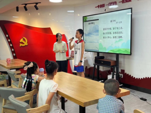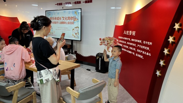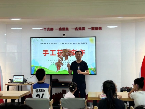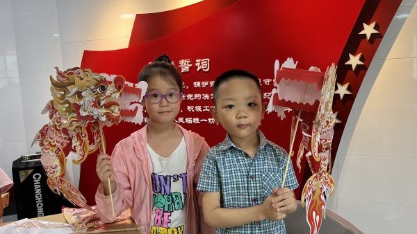 此次活动选址于社区新装修的党建活动室,空间虽紧凑却充满现代感,最引人注目的是墙上熠熠生辉的党徽。活动有两个环节:首先是“诵经典”环节,在人文学院王益教授指导下,研究生邓庆利带领孩子们诵读诗词,沉浸在古诗文的韵律之中,感受传统文化的魅力。紧接着是“手工龙灯”制作,由民俗灯文化普及基地的副主任梁川教授指导,携手美术学院的志愿者们,共同引导孩子们动手制作龙灯。为确保活动既有序又充满乐趣,还特别邀请了家长们参与制作龙灯。孩子们不仅收获了亲手制作的喜悦,更深刻体会到了传统文化的魅力与传承的意义。活动尾声,