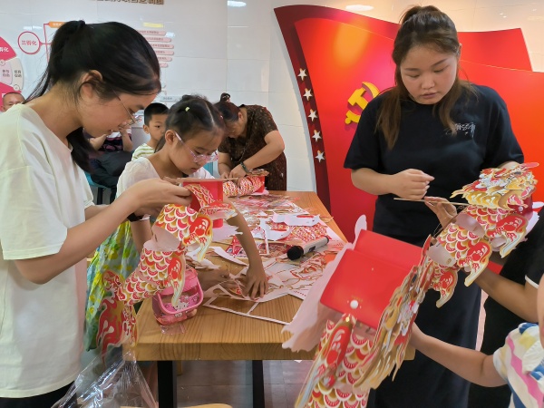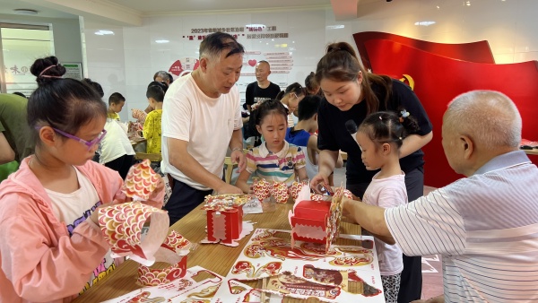 7月18日,由民俗灯文化普及基地的师生及志愿者一行六人前往自贡市自流井区盐店街社区送文化,活动吸引了盐店街社区的20多名儿童参与。