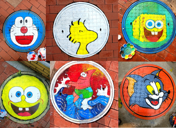 活动旨在美化社区生活环境,提高居民生活质量。大学生志愿者们手拿画笔为暗淡无色的井盖画上一幅幅绚丽多彩的涂鸦,使井盖所在位置突出醒目、表面充满趣味,践行了“奉献、友爱、互助、和谐”的志愿者精神。