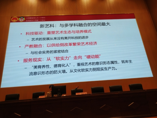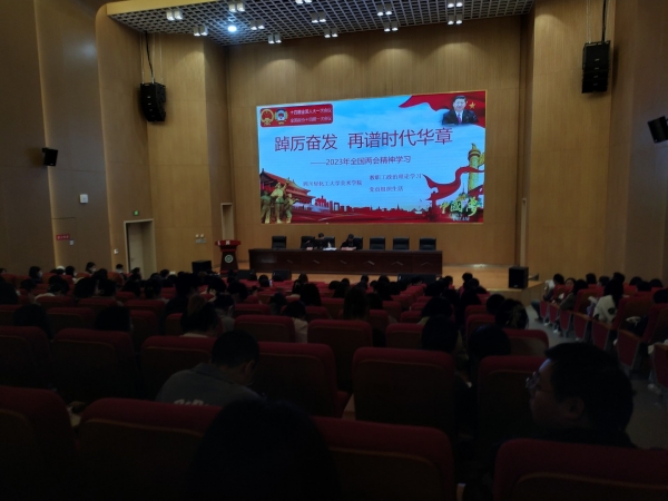 侯懿同志的专题报告包括“两会”基本情况简介、政府工作报告概要、总书记的重要讲话和“以美立人”的思考四个方面内容。报告提纲挈领,概要介绍了2023年全国“两会”主要内容要点;结合实际,提出“以美立人 以美育人 培根铸魂”的新艺科融合发展未来图景,要求全院师生在学习过程中既要坚持 “四个面向”站位,脚踏实地推进艺术学科高质量、高水平发展;又要重视艺术的意识形态属性,筑牢主流意识形态的防火墙。