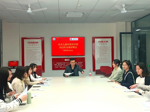 4月6日下午,美术学院2023届毕业生第四场专场招聘会在李白河尚美楼201会议室举行。安岳九韶外国语学校进校举办专场招聘宣讲活动,美术学院组织10名毕业生参加。