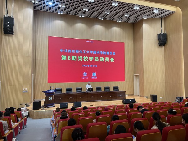 4月14日中午,中共四川轻化工大学美术学院委员会第8期党校学员动员会在尚艺馆艺术报告厅召开。美术学院党委副书记、纪委书记肖雷、美术学院组织工作办公室专职组织员、研究生支部书记唐金文、学生支部书记钟志敏、王丽、王可心,以及美术学院第8期入党积极分子培训班和新党员班全体学员参加了此次大会,会议由唐金文同志主持。