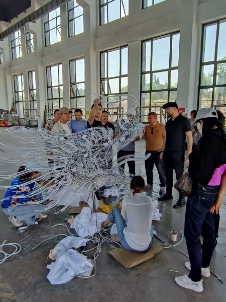 交流会结束后,程刚一行参观了李白河校区尚美楼、匠艺坊等教学场所,匠艺坊彩灯艺术团队向客人演示了自贡彩灯制作工艺和流程。