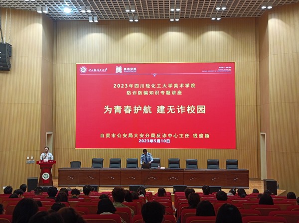 为提升师生识诈防骗能力,有效降低发案率,确保师生财产利益不受损失,5月10日下午,美术学院在尚艺馆104举办防炸防骗知识专题讲座,主讲人为自贡市大安区公安局反诈中心主任钱俊颖和驻校民警余志飞。美术学院党委副书记、纪委书记肖雷主持讲座,美术学院党委书记侯懿,学生工作办公室主任、团委书记郭化丽,部分教师和各班班长、团支书参加。