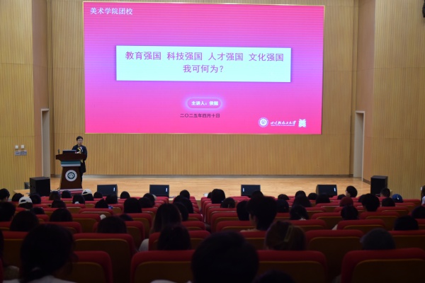本年度团校课程共设4个专题。党委书记侯懿以《教育强国 科技强国 人才强国 文化强国 我可何为?》为题进行精彩授课。侯书记从三个“强国”提出的背景、内涵谈起,分析了数智时代对艺术类人才的需求,结合美术学院的专业,阐述了文化强国建设中美术与设计领域的发展机遇,落脚到“新时代,青年如何做到有为”,鼓励同学们改进学习,既要海绵式学习,也要审辨式学习,从被动学习向主动学习转变,提高“8C”能力,找准自身定位,发挥专业特长,为强国建设贡献青春力量。