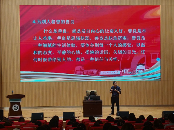 学院团委书记郭化丽围绕《新时代青年的责任和使命》展开论述。她指出,新时代青年生逢其时,重任在肩,应将个人理想融入国家发展大局,勇担时代赋予的历史使命。她列举新时代青年在各领域的奋斗事迹,在脱贫攻坚、科技创新、疫情防控等一线的青年榜样,鼓励同学们学习榜样,勇于创新实践,敢于尝试新方法、新思路,用实际行动解决问题;积极担当作为,为社会发展贡献力量。