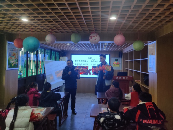 人文学院教授王益负责第一阶段的活动,通过讲解普通话发音吐字、朗诵绕口令和王安石的《梅花》诗、唐寅的《元宵》诗推广普通话。梁川指导第二阶段的活动,在讲解注意事项的基础上,带领2名志愿者指导参加活动的儿童们制作龙灯,锻炼手工能力,塑造对传统节庆文化的认知。