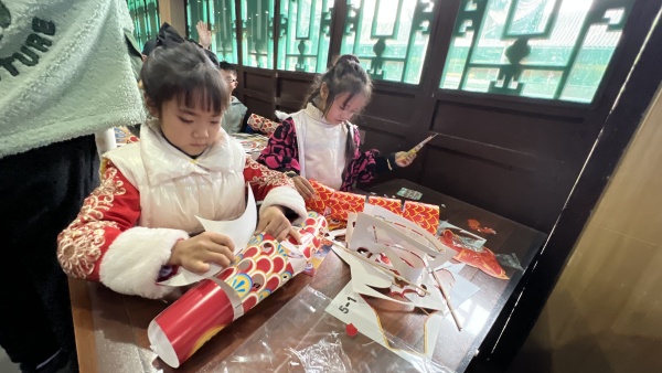 此次活动持续两个半小时。在龙灯制作环节,部分家长和社区工作人员也参与其中,热烈的氛围为盐业历史博物馆这座自贡最为知名的历史建筑增添了不少朝气和人气。在精美的古建筑中诵读传统诗歌,优秀传统文化变得更为鲜活,参与其中的每一个人也获得更多沉浸式体验。