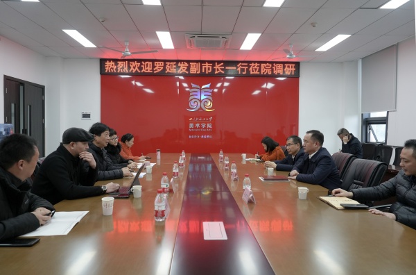 1月4日上午,自贡市副市长罗延发一行莅临美术学院,调研彩灯人才培养情况,学校党委常委、副校长颜杰陪同调研。