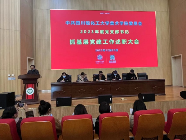 12月26日下午,美术学院党委在李白河校区尚艺馆艺术报告厅(M2-104)召开2023年度党支部书记抓基层党建工作述职大会,学校党委派出人员、教心学院党委书记杜鑫、美术学院师生党员参加了述职大会,大会由美术学院党委书记侯懿主持。