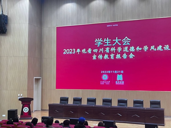 为切实加强科研作风和学风建设,不断营造良好科研生态和学术氛围,根据学校科技处统一部署,11月21日下午,美术学院组织师生代表收看四川省科协、教育厅、科技厅、省国防科工办、中科院成都分院、省社科院联合举办的“2023年四川省科学道德和学风建设宣讲教育报告会”直播。教职工代表在尚美楼216会议室收看,学生代表在尚艺馆学术报告厅观看。