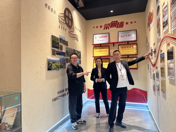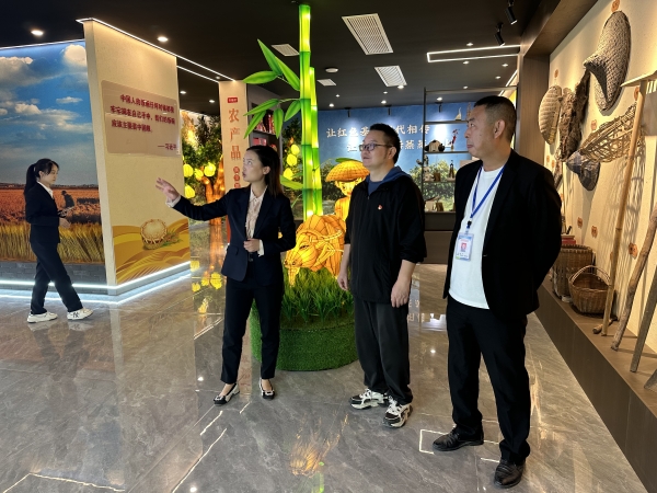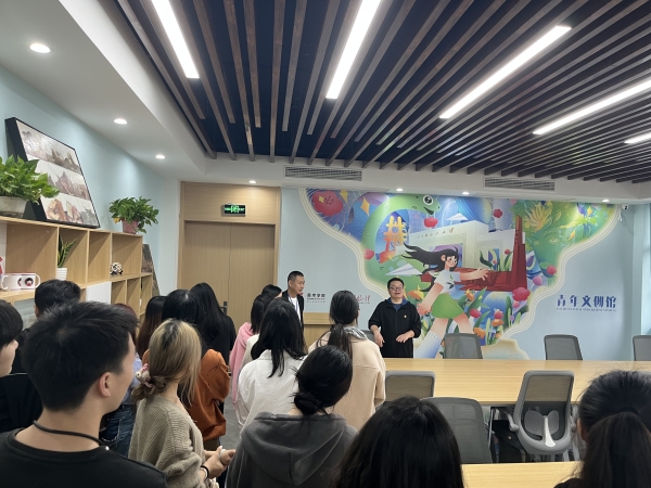第二部分,师生一行参观了江姐村灯会产品制作教学区和美术学院文创工作室。作为乡村振兴合作项目之一,江姐村为美术学院专门设立了一间文创工作室,各种设备设施齐全,师生可以直接在这里开展文创工作。工作室陈列了学院和江姐村前期合作完成的“自贡市首届‘红梅红’红色记忆艺术创作大赛”部分获奖作品。张平书记表示,同学们随时可以到文创工作室进行参观、交流、创作,期待在前期合作基础上,院、村继续推动校地文创项目合作。唐金文表示,我们有了前期良好的合作基础,一定会继续推进校地合作,接下来学院将指派老师带队,建立常态化文创合作团队,为持续推进乡村振兴文化联塑、产业联兴注入新的活力。