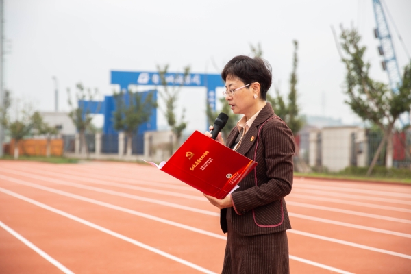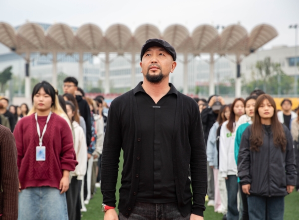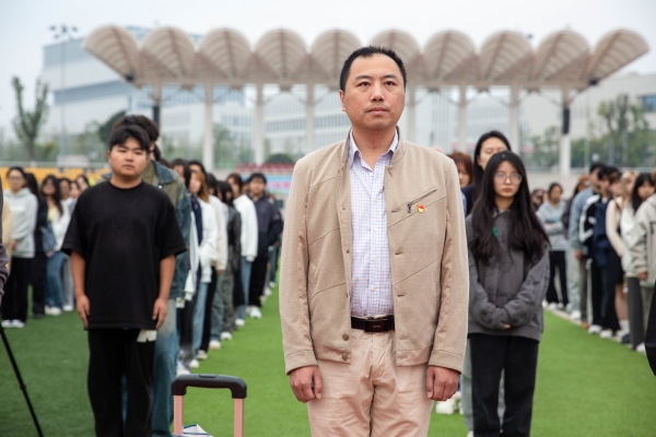 在高高飘扬的国旗下,美术学院党委书记侯懿同志发表了热情洋溢的讲话。侯懿希望全院的师生员工,践行美院人“红·绿·蓝”尚美精神,听党话跟党走,增强四个自信;扎根中国大地深厚的文化土壤,学习借鉴不同文化文明成果,勇于创新创造;学好用好自己的语言,精通至少一门外语;希望大家用手中的笔和鼠标,讲好中国故事,传播优秀中华文化,为民族伟大复兴不断奋斗。