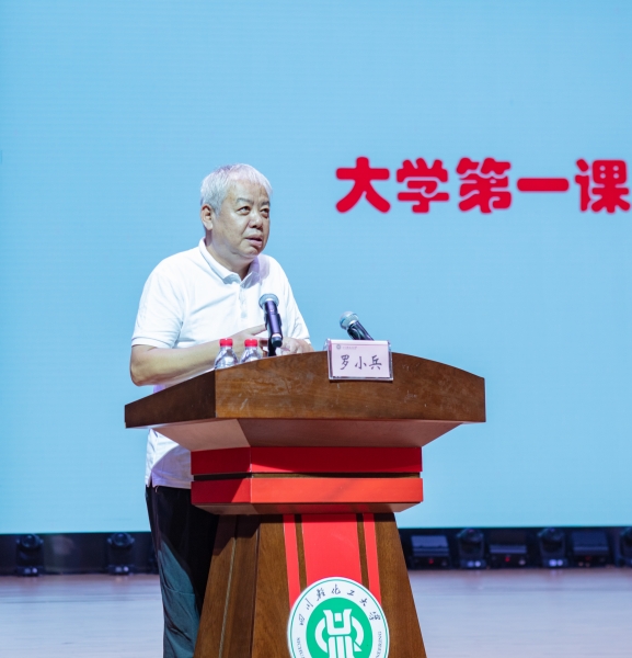 罗小兵教授为新生上《大学第一课》,讲解何谓“大学”、何谓“艺术”和怎样学习“艺术”,要求全体新生树立学术诚信,遵守学术规范与道德。