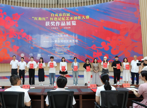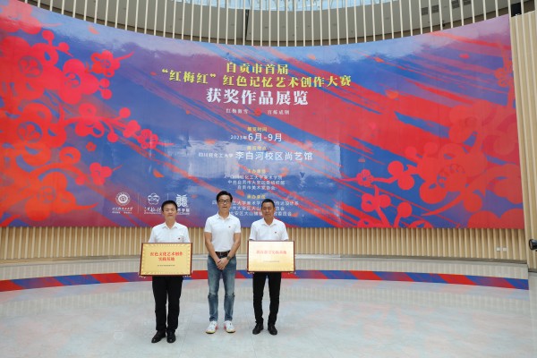 6月27日上午,自贡市首届“红梅红”红色记忆艺术创作大赛获奖作品展览开幕式暨校地合作签字仪式在李白河校区尚艺馆举行。四川轻化工大学、四川音乐学院成都美术学院、自贡市大安区委组织部以及大山铺镇、江姐村等单位的领导和获奖作者、美术学院师生员代表100余人参加开幕式。