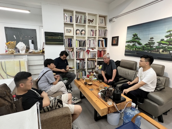 上午,罗小兵教授带领我院美术学教研室教师团队前往四川美术学院观摩该校2023届毕业生作品展。观摩结束后,罗小兵教授一行前往四川美术学院虎溪公社艺术家工作室看望我院优秀校友耿德法博士,并进行深入交流。耿德法向罗小兵教授一行汇报了自己毕业后的艺术成长经历,感谢母校和老师们的培养,在四川轻化工大学本科阶段的学习,为自己的艺术之路奠定了良好基础。罗小兵教授介绍了学校和学院近十年的发展情况,邀请耿德法校友有时间常回母校看看,分享艺术创作经验。耿德法表示,一定会安排时间回母校参观学习。接着,大家就油画创作、教学与研究等话题进行了坦诚交流。