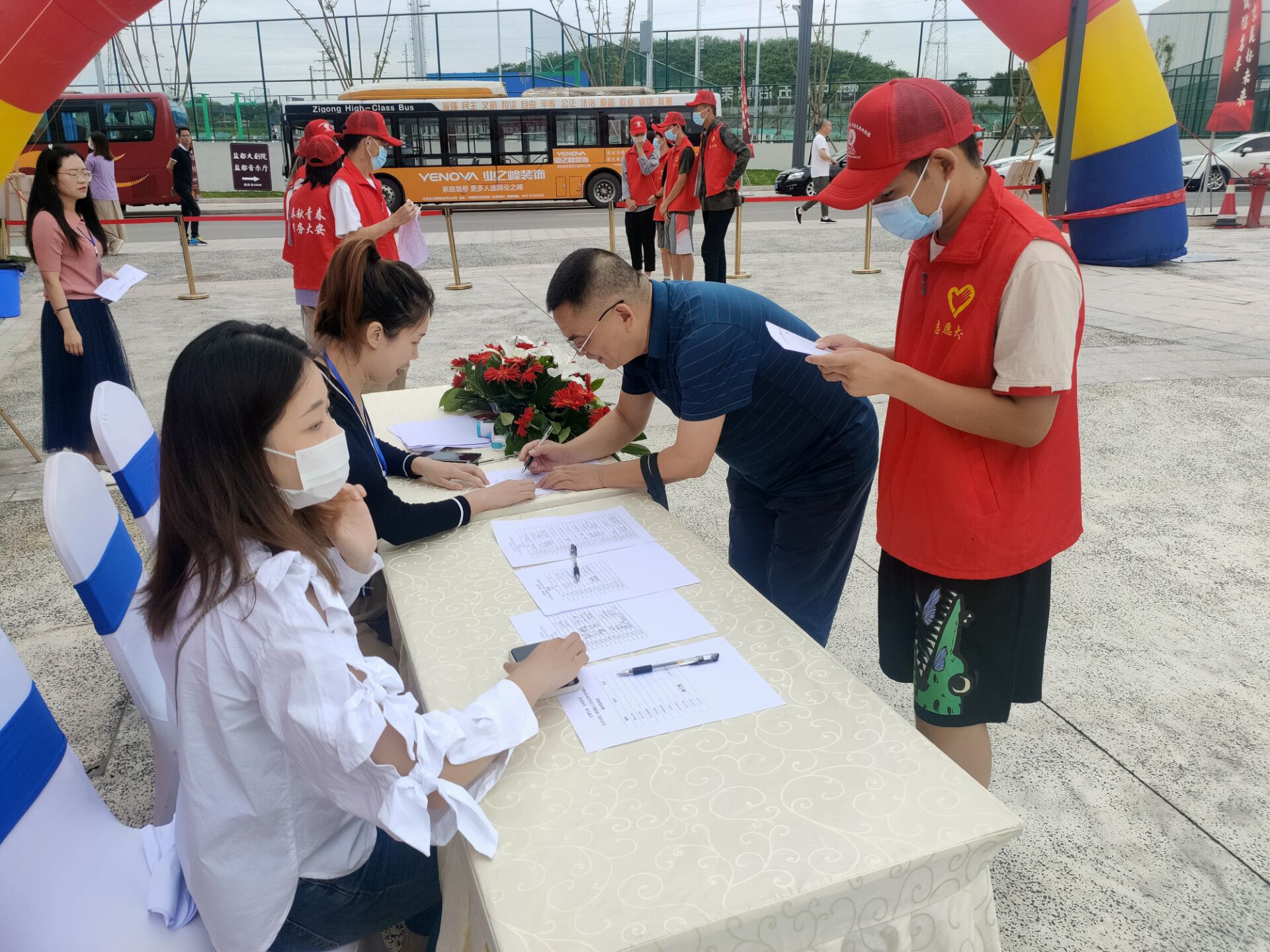 志愿者们在开幕式现场开展以下志愿服务工作。晨曦志愿者们根据安排,分组参与了车辆停放、引导来宾入座、帮助残疾人表演者行动、维护现场秩序等志愿服务。活动现场,处处都有川轻化美院“晨曦”志愿者“红马甲”的身影,志愿者们的工作成果与热情也得到了在场所有人员的肯定和回应。