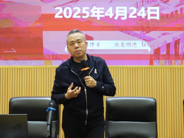 讲座通过经典案例分析、个人设计案例分享,围绕美学设计的起源、中国美学思考、西方美学与设计、东方园林空间设计艺术、建筑艺术设计与信仰空间象征、“设计、美学、创意、生产力的关系”等内容展开,旁征博引、洞见深刻,启发同学们对美的思考。在与同学们的交流互动中,吴教授回答了同学们关于产教融合、大数据AI在艺术中的运用等问题。