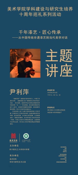 4月25日下午,应美术学院邀请,国家级非遗传承人、中国工艺美术大师尹利萍女士莅临李白河校区,为师生做题为《千年漆艺.匠心传承——从中国传统非遗漆艺到当代美学对话》的学术讲座。200余名师生参加了学术活动,副院长梁川教授出席并担任学术主持。