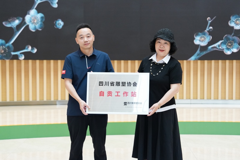 开幕式上,四川省雕塑协会秘书长沈允庆为四川省雕塑协会自贡工作站授牌。