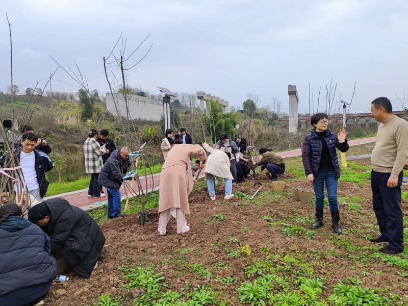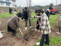 3月12日下午,美术学院党委组织8个师生党支部党员和积极分子代表,前往大安区大山铺镇江姐村开展义务植树活动,以实际行动弘扬江姐精神。