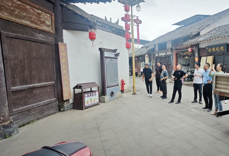 上午9:30,黄磊一行到达赵化镇政府,在镇长陈林和县委组织部干部罗强的陪同下,按照赵化镇农文旅网红游览路线图,先后考察了隆兴寺旧址、滨江文旅区、两湖会馆、刘光第故居、明月楼、新华街等点位。考察结束,大家回到镇政府会议室,就后续工作进行交流。