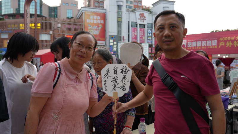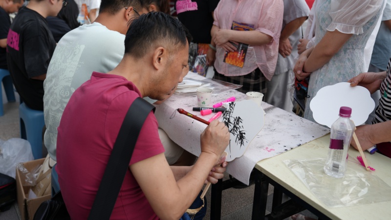 活动得到市民积极响应,师生们的画案前始终人头攒动。为得到师生亲手绘制的团扇,不少市民排队近半小时。