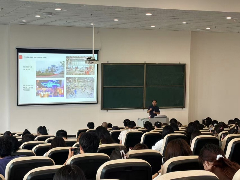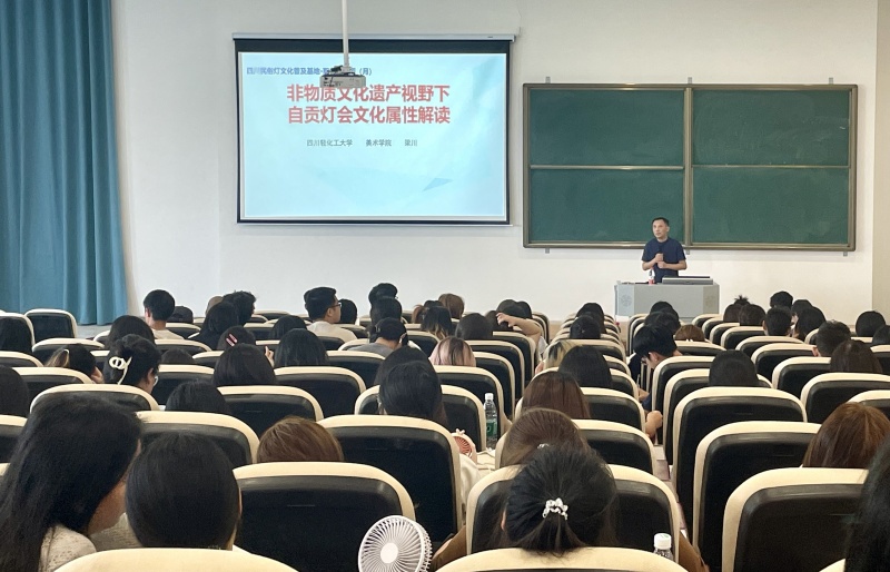 5月30日上午,自贡职业技术学院文旅与建筑学院特邀美术学院副院长、民俗灯文化普及基地副主任梁川教授举办《非物质文化遗产视野下自贡灯会文化属性解读》学术讲座。讲座由文旅与建筑学院田北平教授主持,在学术交流中心203教室举行,文化艺术教研室教师及2023级艺术设计专业140余名师生参加。