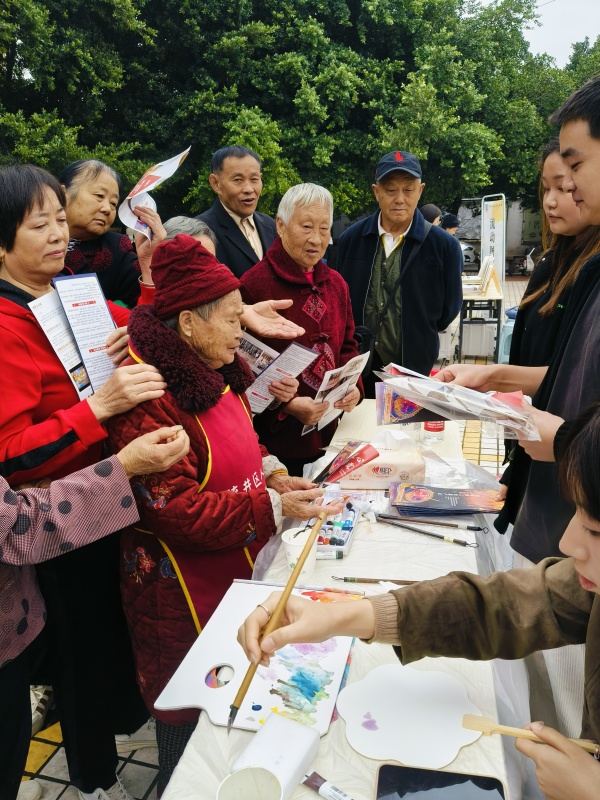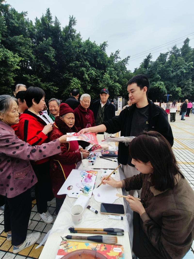 为聚集人气、吸引观众,美术学院安排了2名研究生现场绘制团扇;为切实宣传彩灯文化知识,利用分发团扇的契机,向群众分发彩灯文化宣传单300余份。此次活动,美术学院组织了2个学生社团与2名研究生共计20参加,有效提升了“四季村晚”示范展演活动的社会影响。