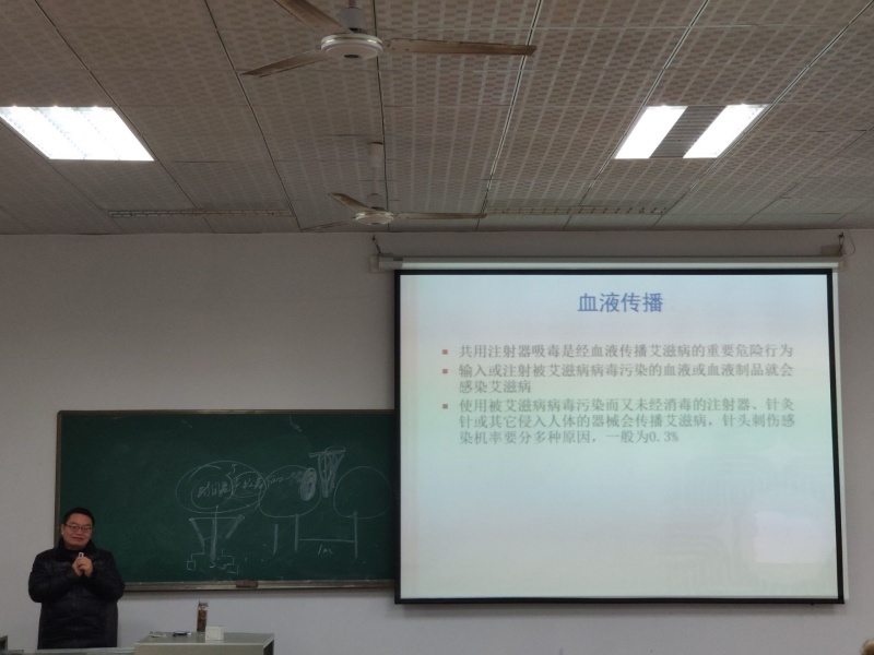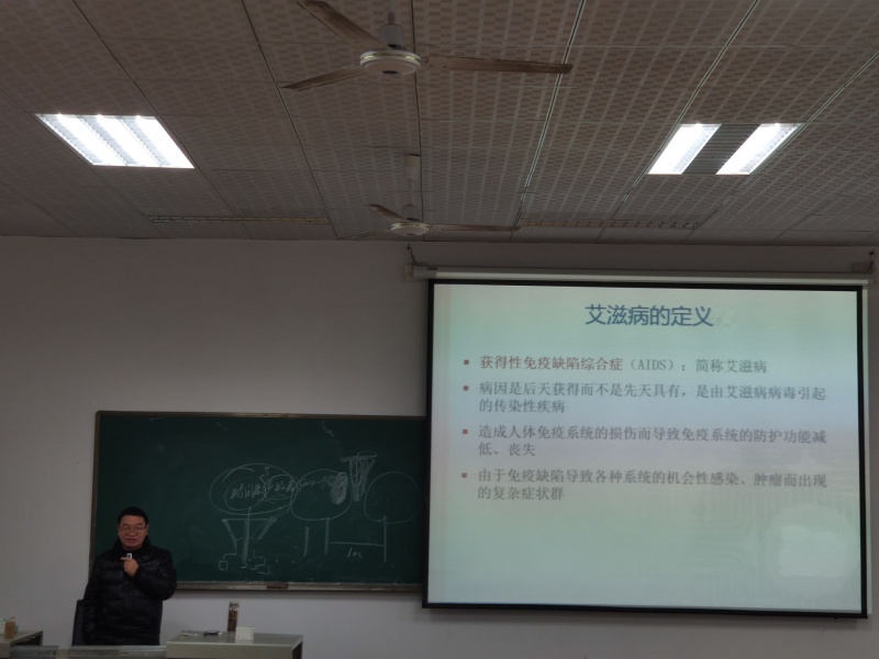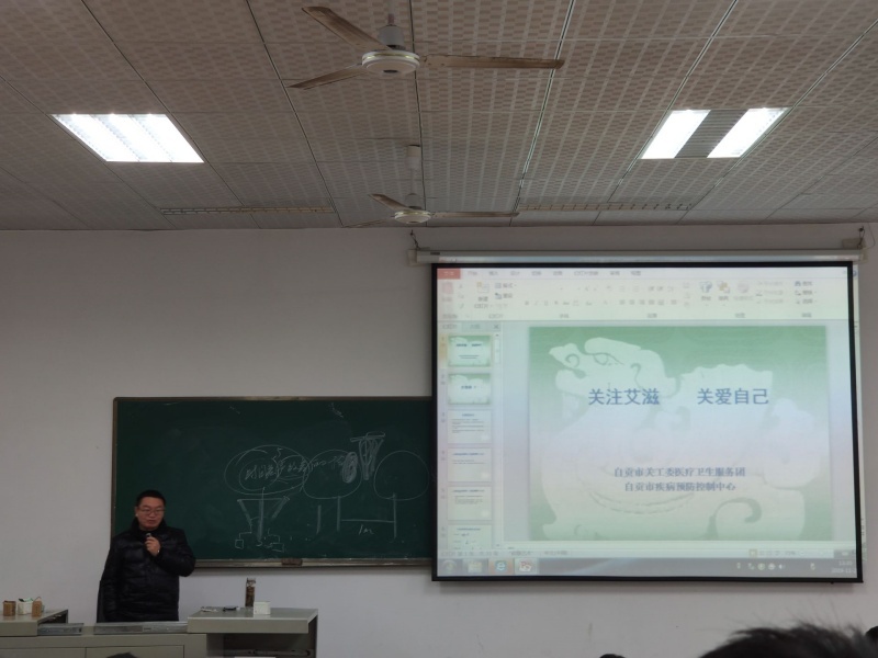 今天的新生防艾知识宣讲会,是提高防艾知识知晓率,实现新生全覆盖的具体措施之一。唐金文详细讲解了自贡市关工委医疗卫生服务团、自贡市疾病预防控制中心提供的防艾知识宣讲课件《关注艾滋关爱自己》,重点介绍了“艾滋病的定义”、“艾滋病病毒的三种传播途径”、“HIV感染的三种结局”、“目前我国艾滋病疫情呈现四个特点”、“自贡市艾滋病疫情情况”、“自贡市艾滋病防治网络”等内容。
