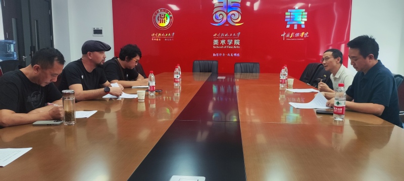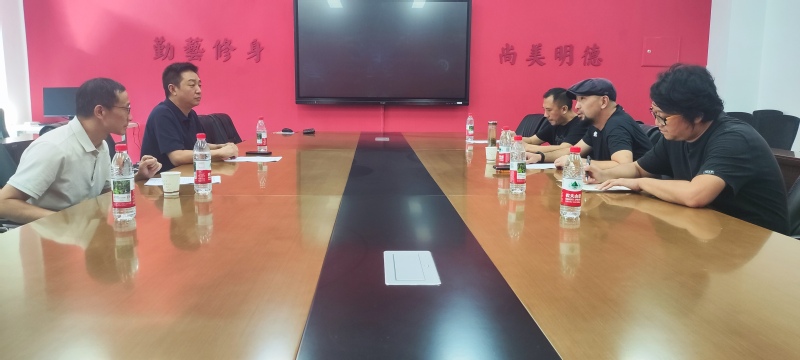 2025年8月26日上午,成都大学美术与设计学院副院长代钰洪教授,绘画系主任杨波教授来院交流,就联合承担2025年四川省非物质文化遗产传承人研修培训项目——当代彩灯艺术创新设计人才研培工作进行协商。美术学院院长黄磊教授、党委书记梁川教授、美术学系主任牛杰副教授参加协商会议。