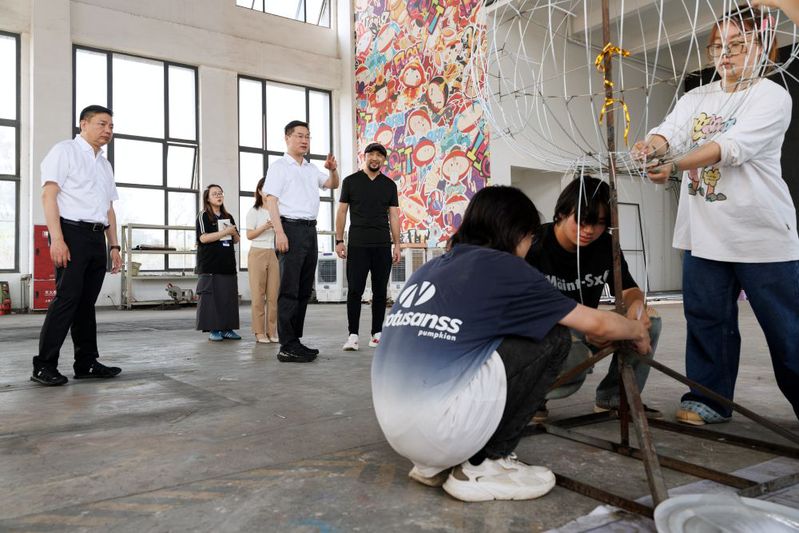 在匠艺坊,美术学院院长黄磊向曾洪扬一行全面汇报近年来学院依托自贡彩灯文化产业资源,成功创建“中国彩灯学院”,创新培养彩灯艺术人才的教学改革举措。
